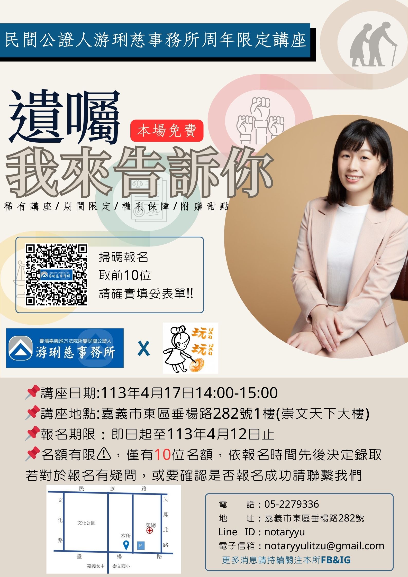 ►講座地點:嘉義市東區垂楊路282號1樓(崇文天下大樓)