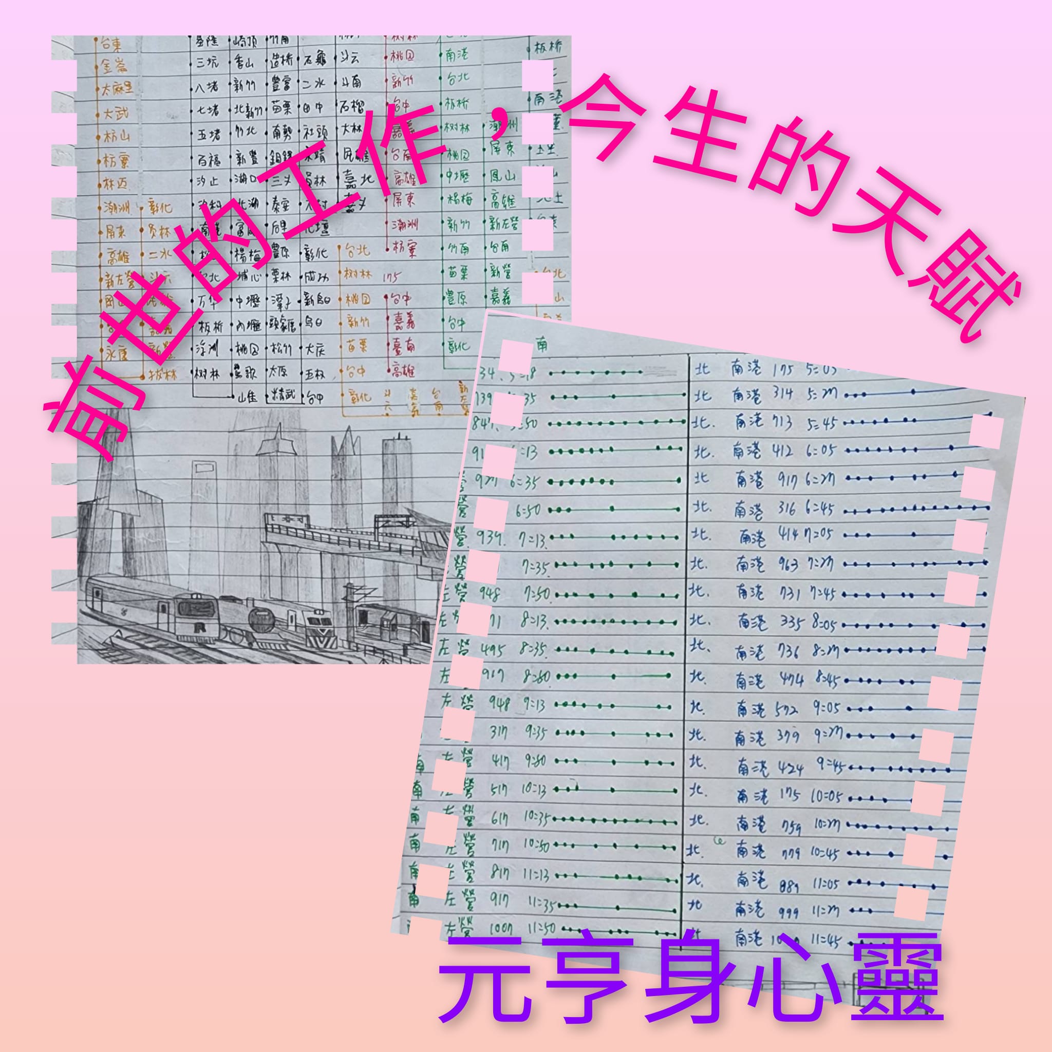 一、 非常喜歡畫火車及郵輪,畫工細緻, 而且,每次去火車站,都能精準背出〔班車時刻表〕