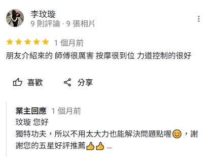 朋友介紹來的 師傅很厲害 按摩很到位 力道控制的很好