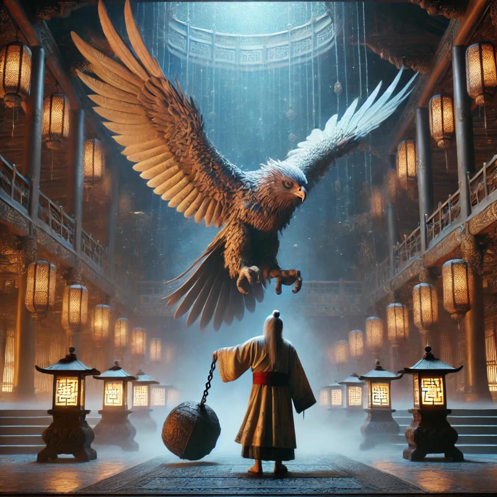 我看到「智慧老人」,突然變成一隻鳥,身體上綁了一個很重的鉛塊,讓鳥一直掙扎,幾乎飛不起來。