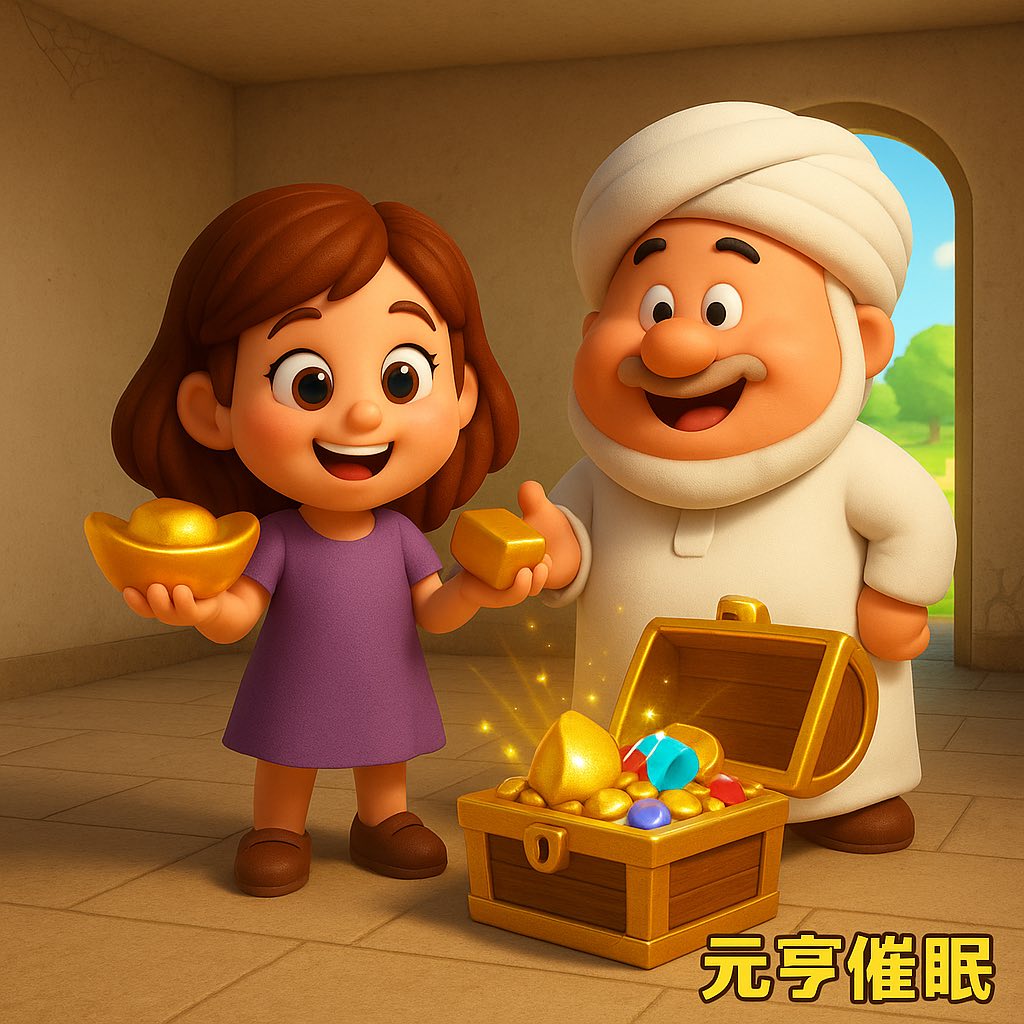 這次,他帶來了一盒珠寶箱,裡面有兩樣寶物:金元寶與金塊。
