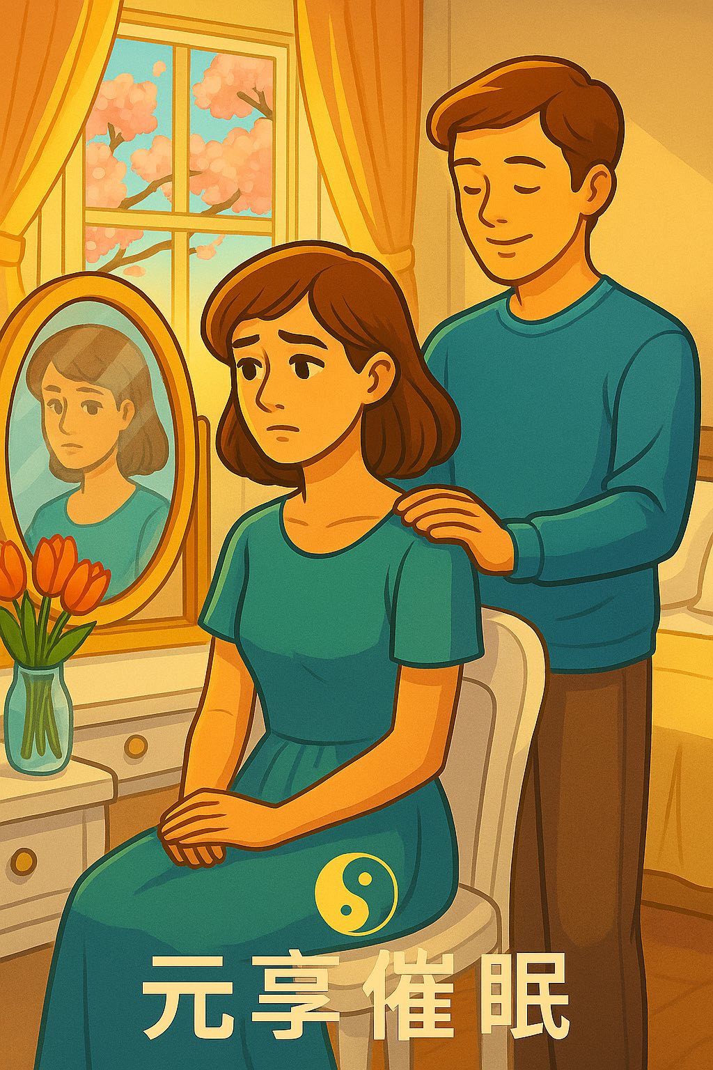 在催眠中,芷涵坐在梳妝台前,望著鏡中的自己,終於學會了原諒,那不只是對別人的寬恕,更是對自己的擁抱。