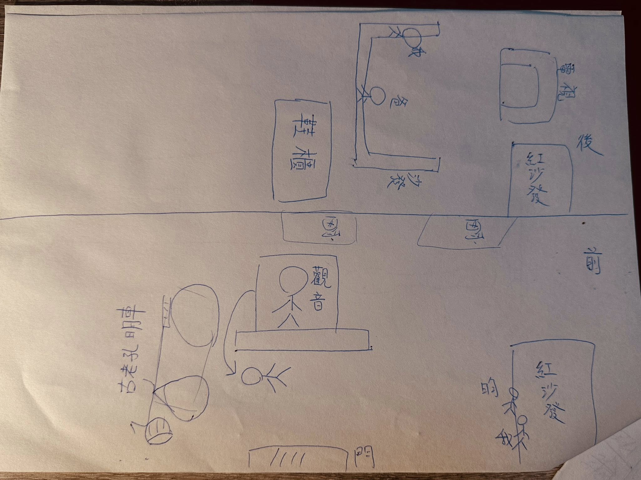 附件客廳簡圖,是淑芬催眠後,親手所畫