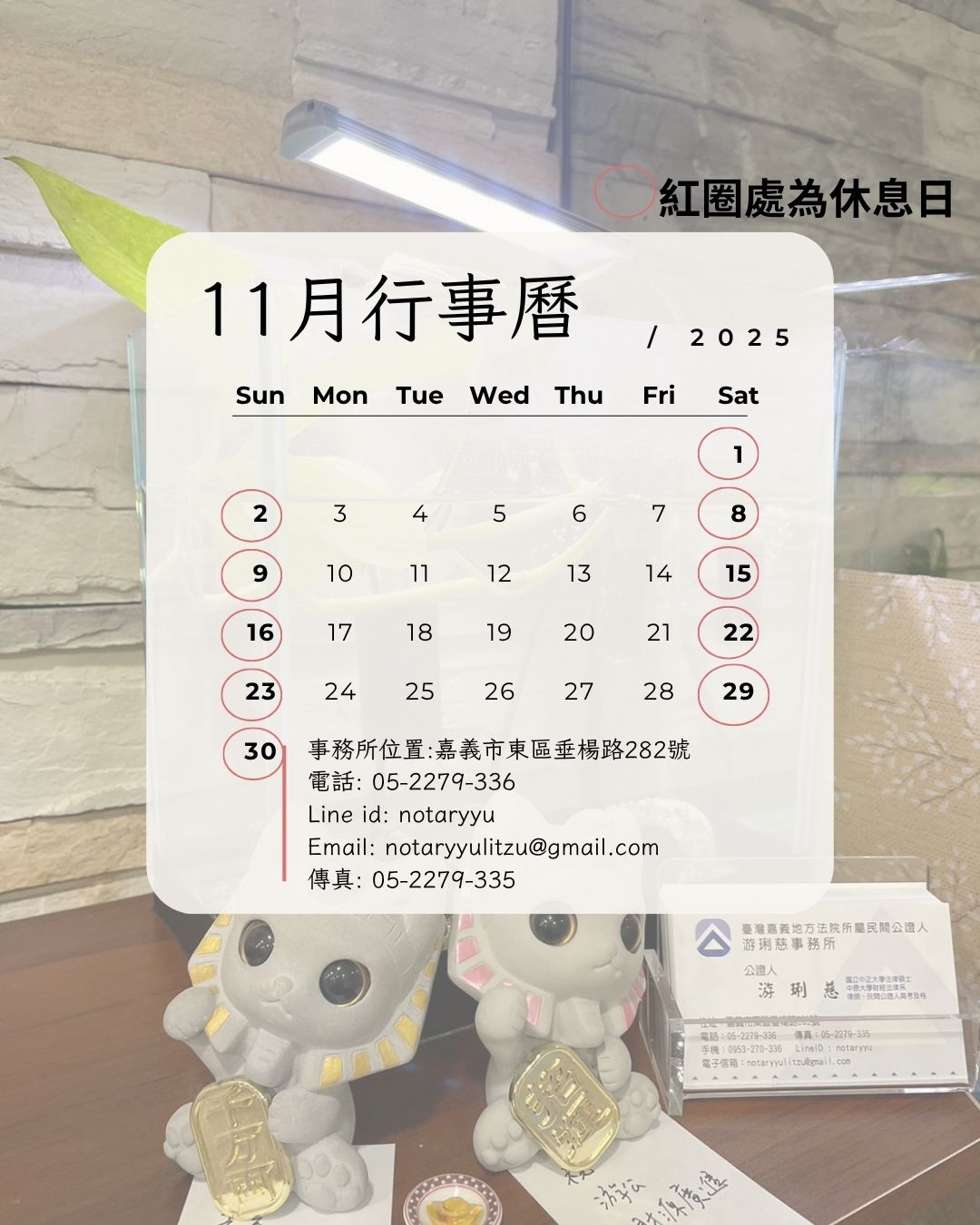114年11月行事曆|公證人游琍慈事務所-#公證人#房屋租賃公證 #嘉義太陽能屋頂公證 #嘉義太陽能土地公證#離婚協議書公證