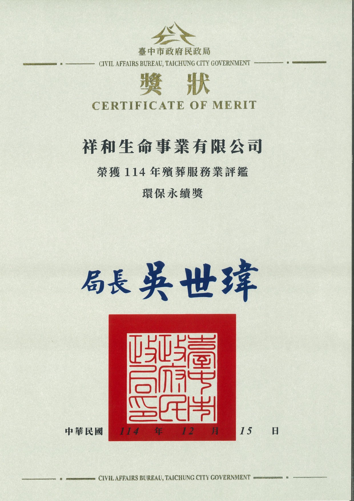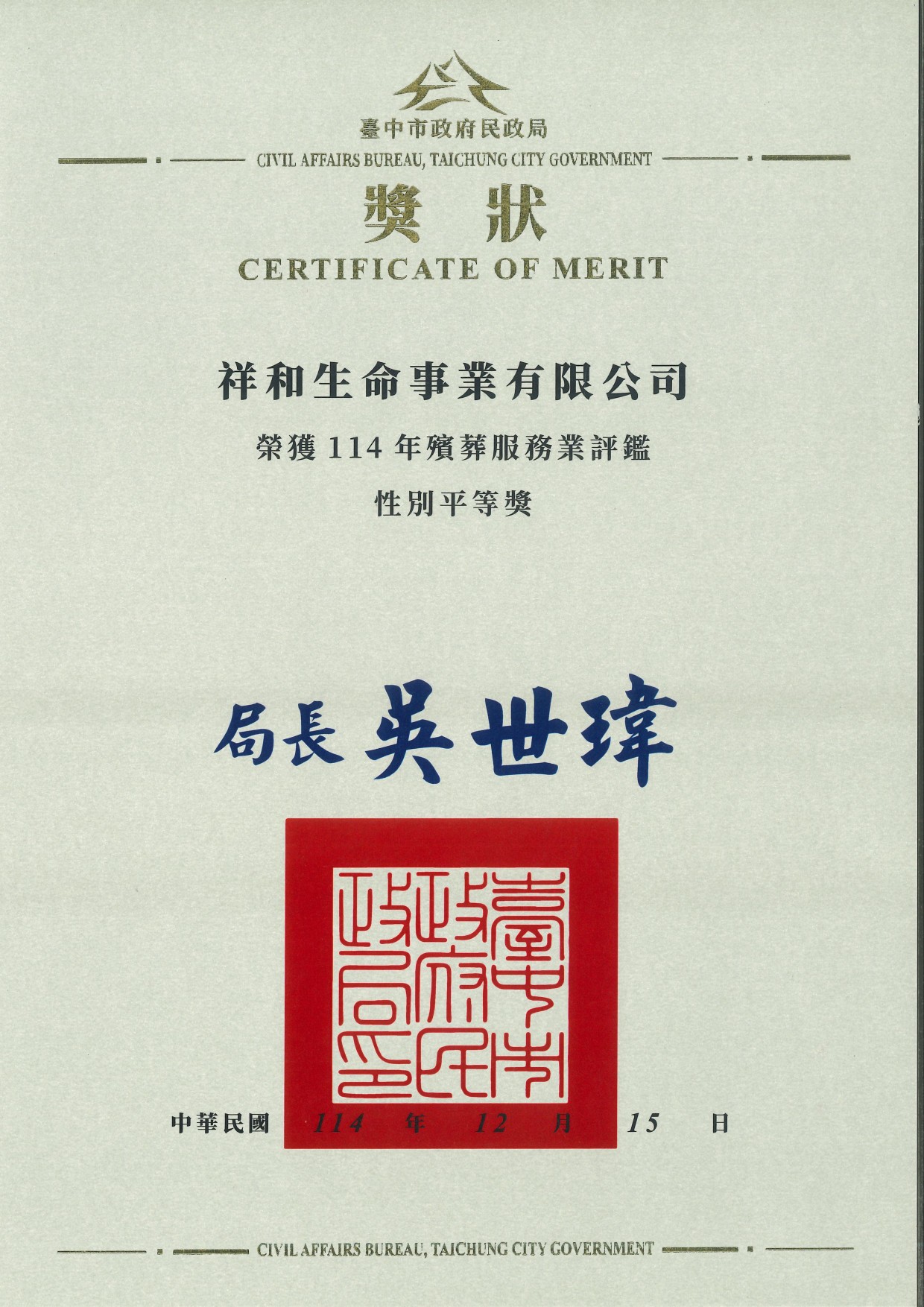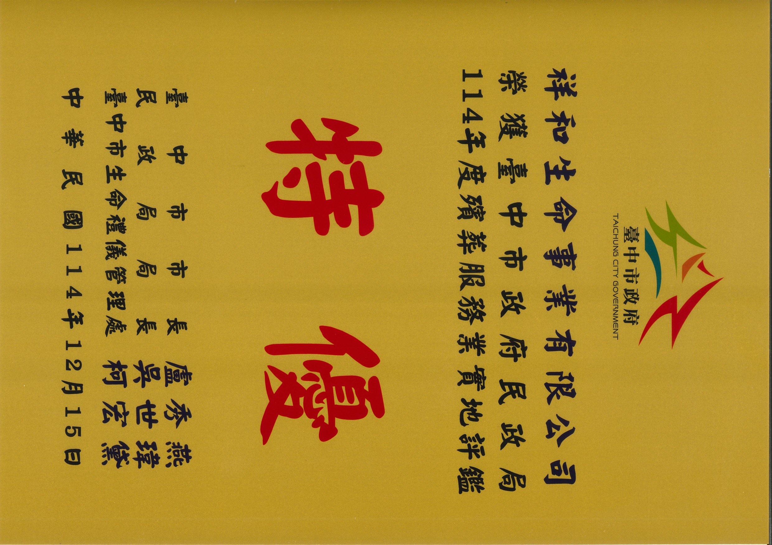 特優(中部唯一基督徒殯葬業者獲此肯定)