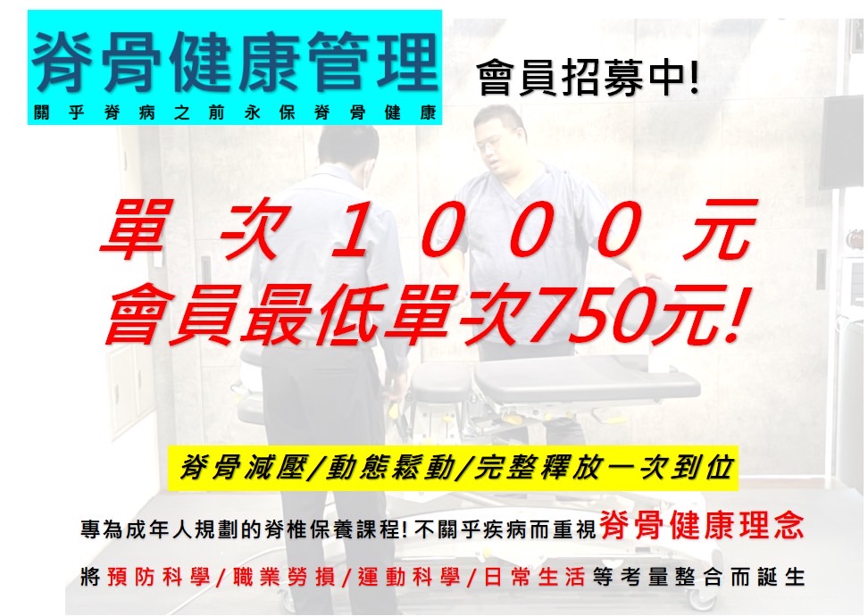 脊病來襲之前身體給了您數十年的機會,保養很簡單只差別在你是否把它看作日常的一環。
