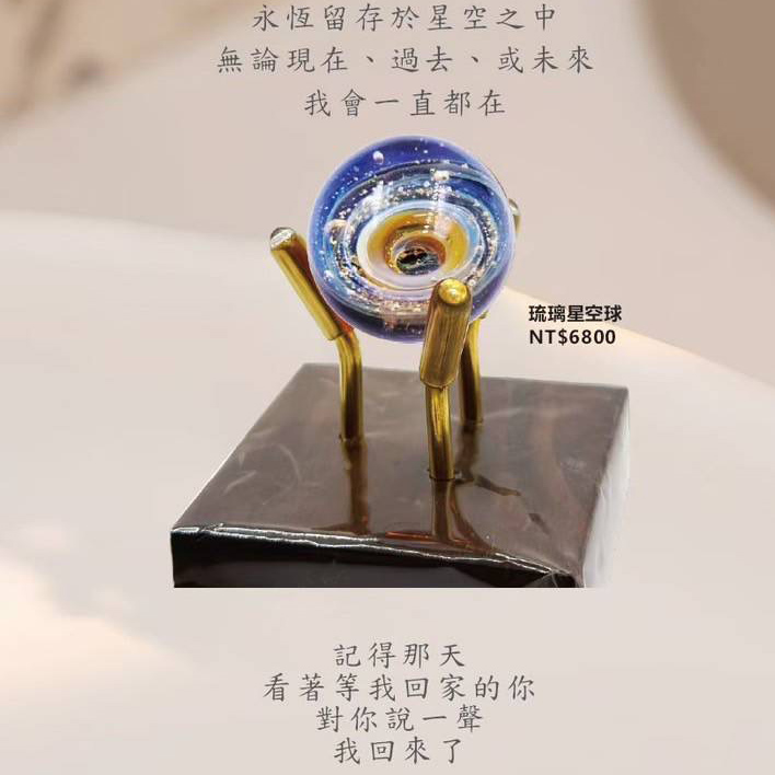 忙碌的日常裡,只要低頭看向指尖, 就能看見他縮小了身體,化作剔透的琉璃陪伴著你。 每一道琉璃紋理,都像他生前溫柔的注視, 在你提筆、工作、輕撫臉龐時,給予最安靜的力量。 往後的日子,我們依然並肩前行,手心裡永遠有他的溫度。